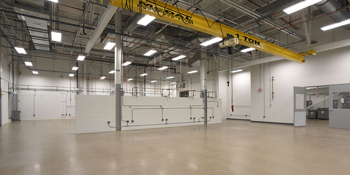 Poised to be the most advanced on the East Coast, a 1,600 ft2 acoustic testing facility was constructed for airborne and structure-borne noise testing . The lab includes dual acoustic chambers with high pressure and low pressure testing capabilities at less than 40 decibels for frequencies ranging from 8 to 16,000 Hz. Testing will occur in short durations through a blowdown to atmosphere method—with max pressure and flow ranging from 650 PSIG (up to 28,000 SCFM) to 6,300 PSIG (up to 270,000 SCFM) .