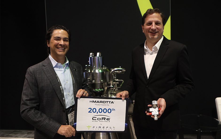 MONTVILLE, N.J.—August 25, 2021—Marotta Controls, a rapidly growing aerospace and defense supplier, announces the delivery of its 20,000th CoRe® valve to its customer Firefly Aerospace at the 36th Space Symposium this week. The milestone marks the rapid growth of Marotta’s CoRe Flow Controls series, a portfolio of 13 high performance solenoid valves designed for complex commercial launch vehicles.